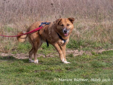 Caramel ist erst seit kurzer Zeit bei uns und hat in dieser Zeit bereits eine tolle Entwicklung gezeigt. Sie ist eine aufgeschlossene und freundliche Hündin, die sich freut, wenn man an ihr Gehege kommt und die den Kontakt zu Menschen sucht. Spaziergänge machen ihr viel Freude. Mit anderen Hunden versteht sich Caramell gut und begegnet ihnen freundlich. Caramell ist eine lebhafte, fröhliche Hündin, die gute Laune verbreitet. Aufgrund ihres freundlichen und offenen Wesens können wir uns gut vorstellen, dass sie auch in eine Familie mit Kindern passt. |
