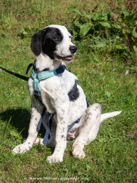 Pepita ist ein echtes Riesenbaby mit einem Herzen aus Gold! Diese tolle Hündin ist nicht nur sehr kuschelbedürftig, sondern auch ein wahrer Spielkamerad für ihre Artgenossen. Sie liebt es, mit anderen Hunden zu toben und ihre Energie in fröhlichen Spielen auszuleben. Sie kann aber auch stundenlang auf dem Podest liegen, entspannen und auf streichelnde Hände warten. |
